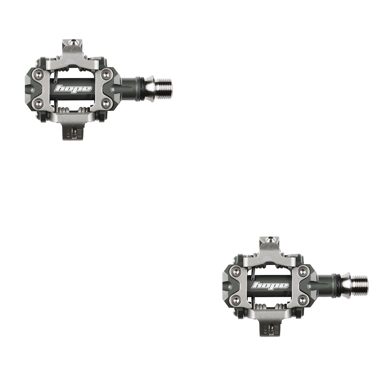 // Pedale werden mit zwei Stollenoptionen geliefert; 4° oder 5° Freischwimmer bzw. 12° oder 13° Auslösewinkel. Beide Stollen ermöglichen auch 2 mm seitlichen (von Seite zu Seite) Schwimmer